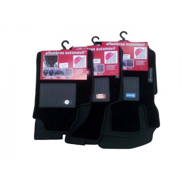 Juego de alfombras Mayr de color negro, fabricadas en moqueta. Se adaptan perfectamente ya que se realizan especificamente para cada marca y modelo de vehículo.