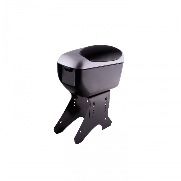 Apoyabrazos universal de color cromado/negro.La tapa puede levantarse para guardar objetos.Medidas: 275x165x120 mm.