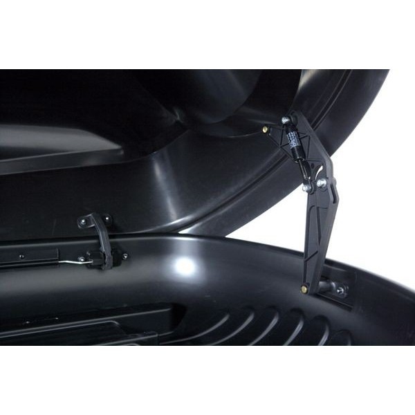 - Alta calidad ABS - Resistente a la lluvia, sol, nieve - Capacidad 460 litros - Medidas: 197x71x48 cm - Carga max. 75 kg - Sistema rapido de anclaje EASY FIX - Cerradura con llave - Forma aerodinamica - Cierre a gas