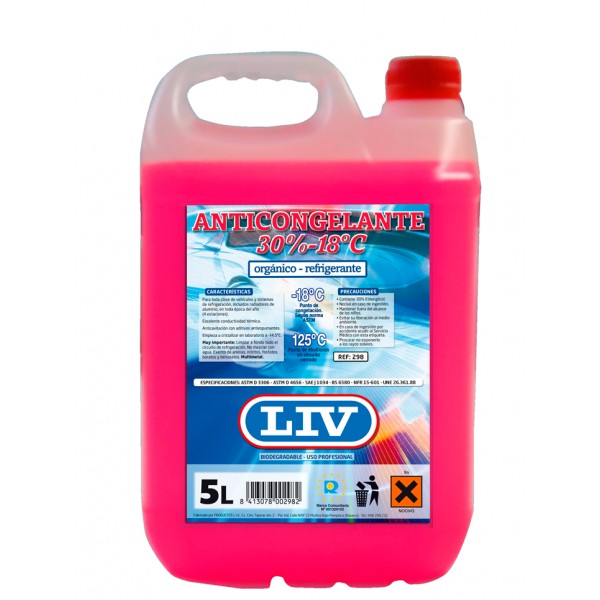 Anticongelante-refrigerante fabricado con inhidores de corrosión un 30% de Etilenglicol y agua destilada-desionizada. Para todo tipo de vehículos.