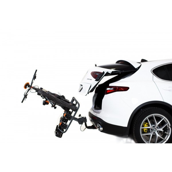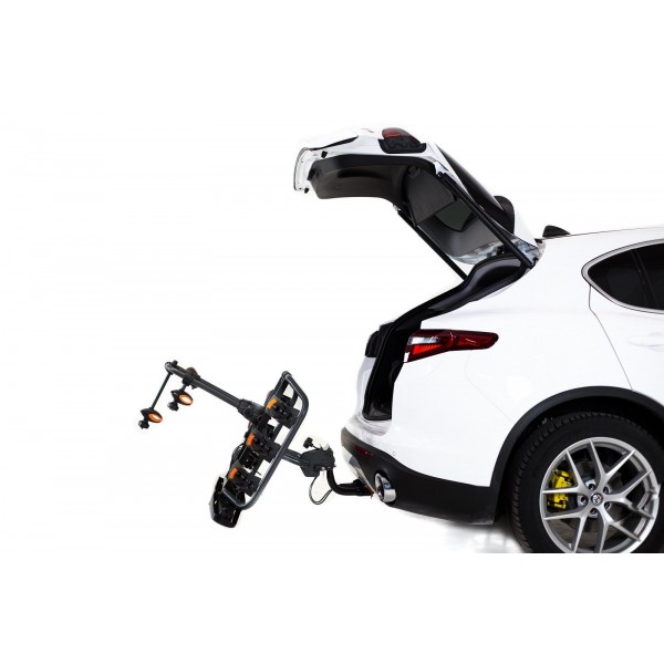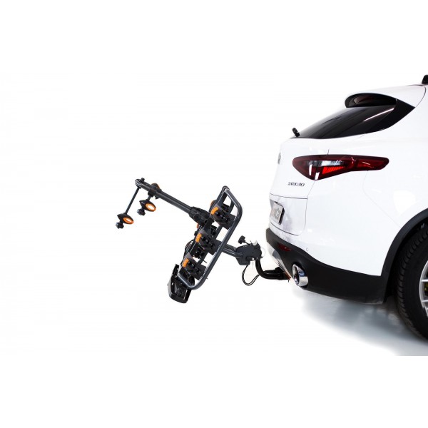 El portabicicletas sobre bola de enganche Towcar TR3 es abatible para poder acceder al maletero con las bicicletas cargadas.
