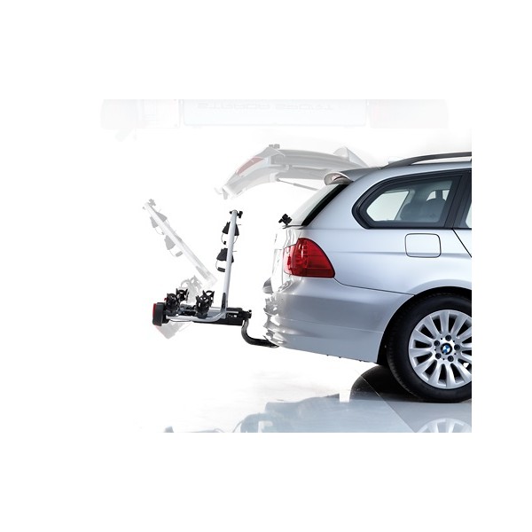 Portabicicletas para el transporte de 3 + (1 opcional) o 2 e-byke El mecanismo basculante facilita el acceso rápido al maletero.Los brazos se pueden girar/orientar en cualquier dirección.El cuadro de la bicicleta se sujeta firmemente con el brazo gracias a una abrazadera/cincha recubierta de goma y reforzada de acero.Portabicicletas ultra ligero y extremadamente estable CONSULTAR EXISTENCIAS