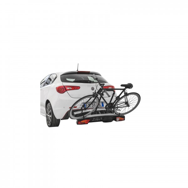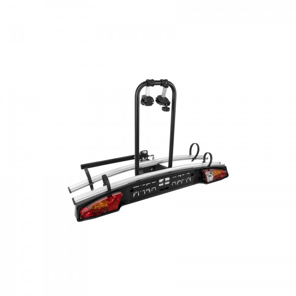 Válido para 2 bicicletas o 1 Ebike (bicicleta eléctrica) como máximo.Acople rápido a bola de remolque de su vehículo por palanca.No precisa de herramientas para sujetarlo a la bola de enganche.Carriles de aluminio.Llave antirrobo a la bola.Abatible.