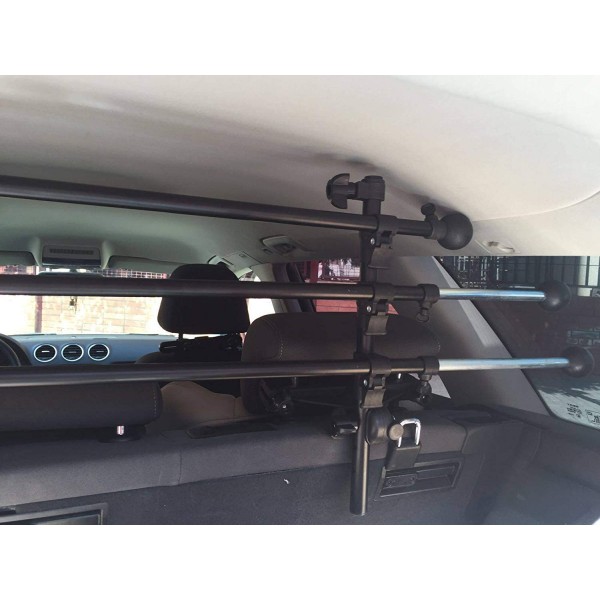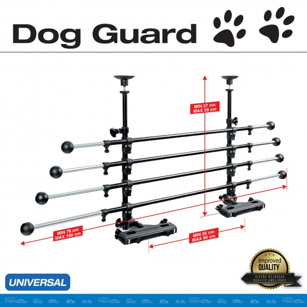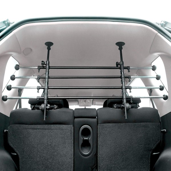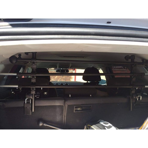 Separador metálico universal para mascota, que permite regular su tamaño y adaptarlo a la parte trasera del vehículo, de forma que quede correctamente ajustado.