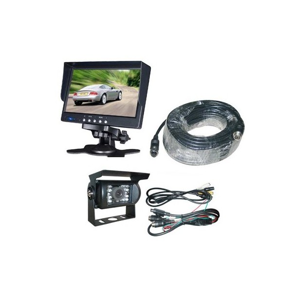Kit vision trasera, monitor color 7" TFT + Camara con infrarrojos + 20mts de cable + mando a distancia